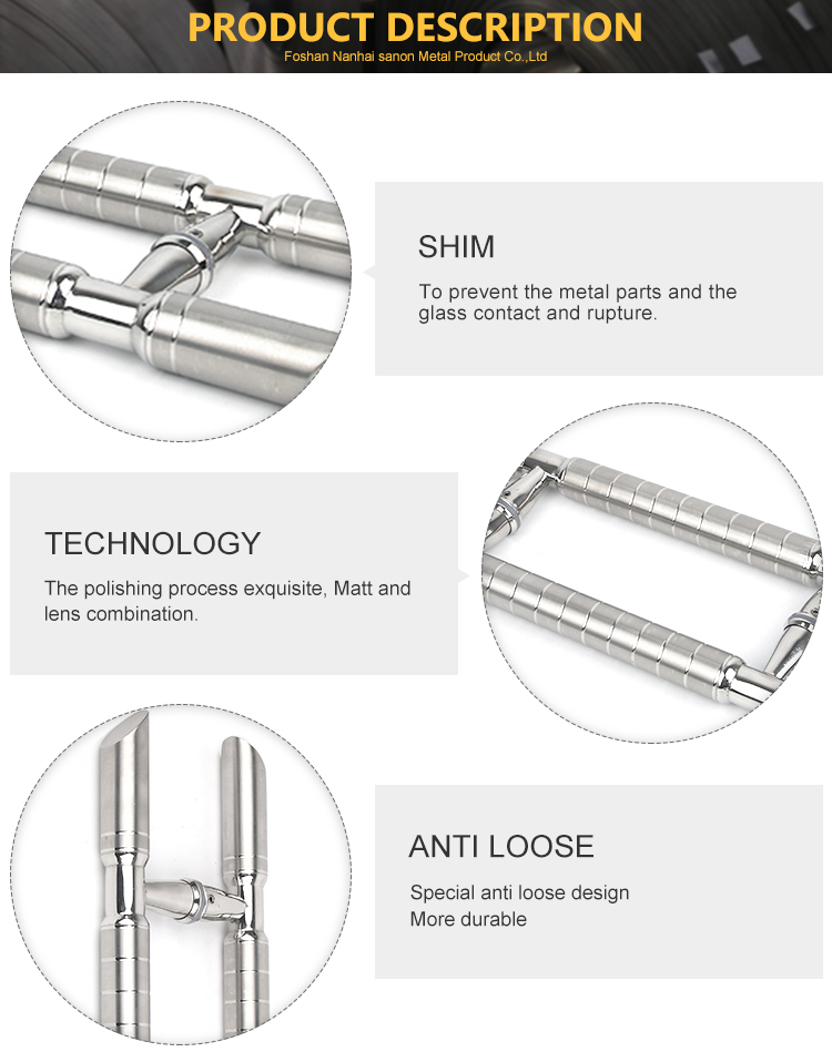 • H型中砂亮光玻璃门拉手304开元网页版材质开元网页版玻璃大门把手