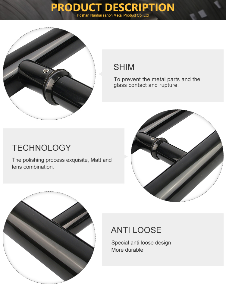 H型黑色玻璃门拉手304开元网页版材质开元网页版玻璃大门把手